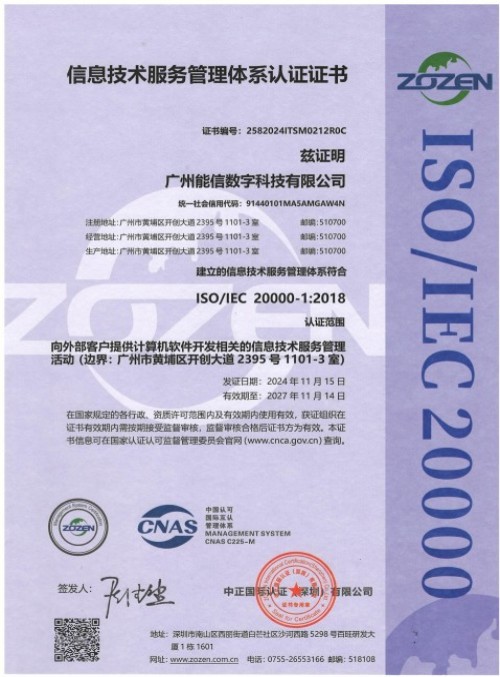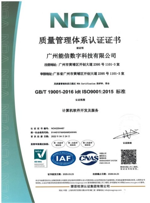 广州能信数字科技有限公司成立于2017年,致力于成为电力行业领先的数字化综合解决方案提供商,总部位于广州黄埔至泰商业广场,在全国多地设有办事处。公司核心团队来自华为和国内知名电力企业,基于对数字化与AI的深入理解,通过大数据、人工智能、区块链、物联网等先进技术,致力于电力领域数字化转型的综合解决方案开发,使能电力行业数字化转型。目前公司已经通过ISO9001质量管理体系认证、ISO14001环境管理体系认证、ISO45001职业健康安全管理体系认证、CMMI-3级软件研发能力认证、双软企业认证、企业资信AAA认证、重合同守信用企业认证等多项权威认证。公司拥有先进的科技创新能力,研发人员占比超过60%。